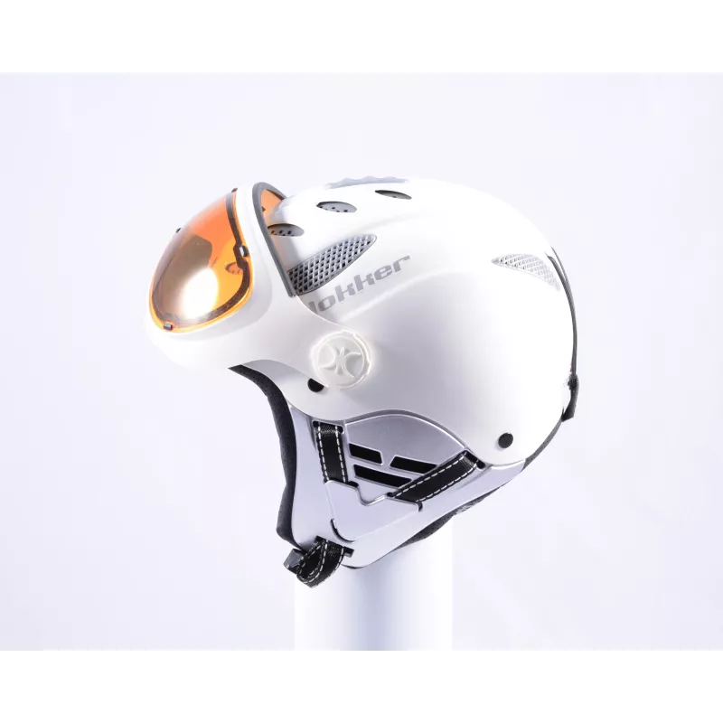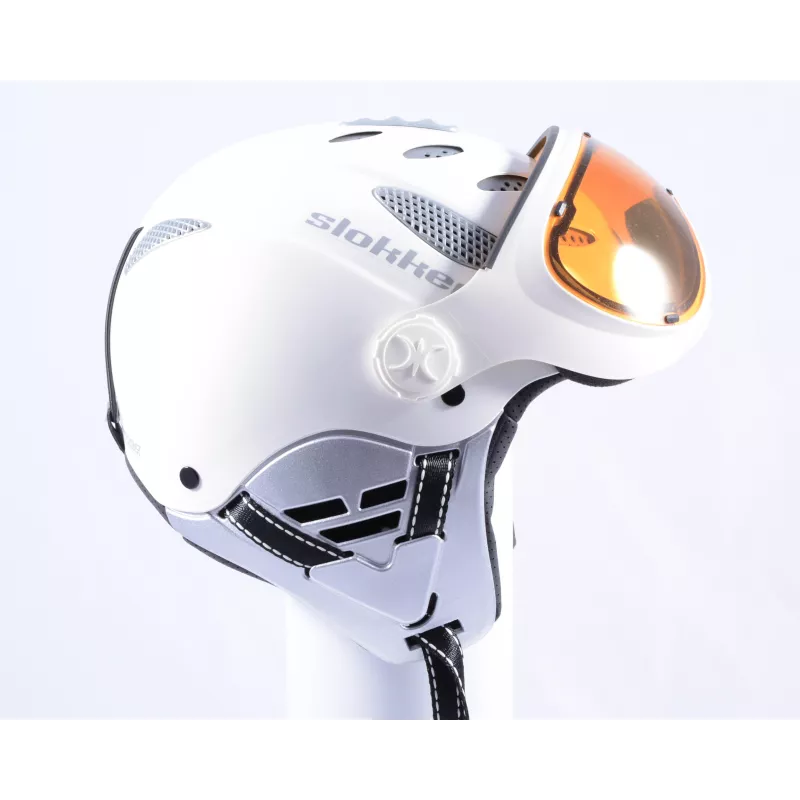 De Slokker Raider Pro is voorzien van ventilatie die je kunt regelen, een zachte voering en de oorstukken kun je bij warm weer afnemen. De maat van deze skihelm is verstelbaar met een draaiknop voor een heerlijke pasvorm. Het oranje vizier van deze slokker raider pro (cat. 2) is 100% UV werend, optimaal tijdens slecht zicht dagen en kleurt mee bij zonnig weer.